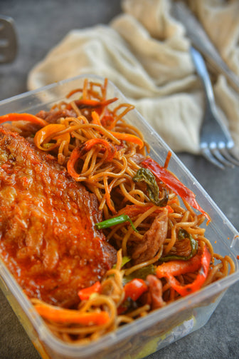 Our spaghetti served with a spicy tomato based sauce, carrot, sausage, peppers and our special glazed turkey cut
